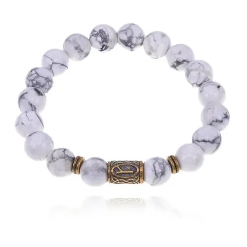 Браслет со славянской руной Алатырь и нат.камнем Кахолонг BSRK-03-07