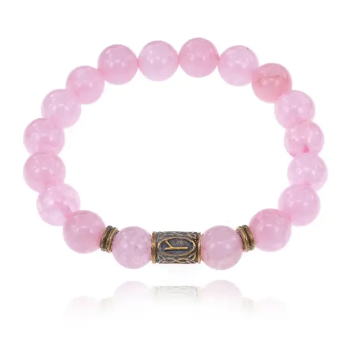 Браслет со славянской руной Алатырь из натурального камня розовый кварц.