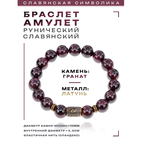 Славянский рунический стрейч-браслет с натуральным камнем гранатом.
