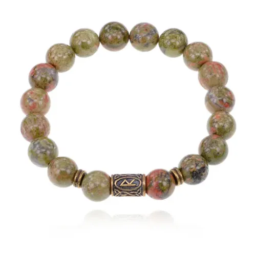 Браслет со славянской руной Радуга и нат.камнем Унакит BSRK-04-20