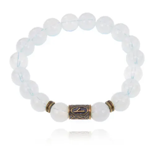 Браслет со славянской руной Нужда и синт.камнем Лунный камень BSRK-05-11