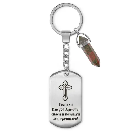 Брелок Спаси и помилуй с нат.камнем Унакит BKZ-BJK-221-UN