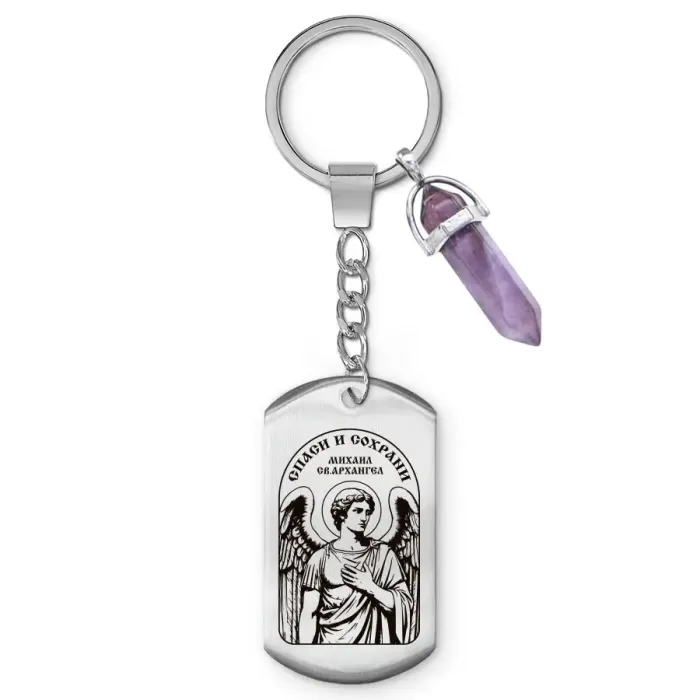 Брелок с подвеской из натурального камня аметист представляет собой символ защиты и поддержки. Архангела Михаила традиционно просят о помощи в путешествиях, защите от бед и несчастий, а также в моменты великой печали. Основные особенности: