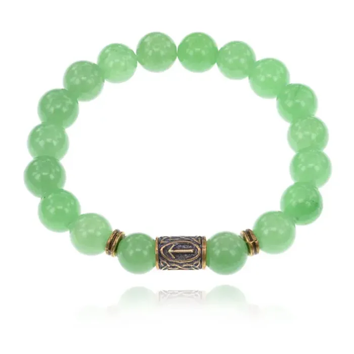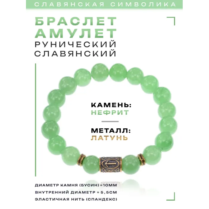 Славянский рунический стрейч-браслет из натурального нефрита с символом руны Треба.