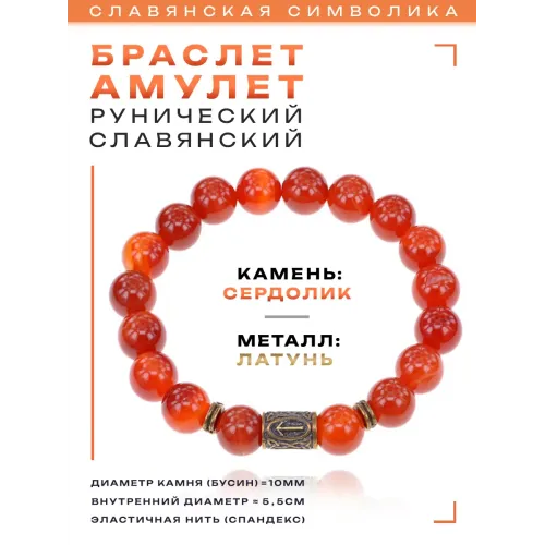 Славянский рунический стрейч-браслет из натурального камня сердолика с символом руны Треба.