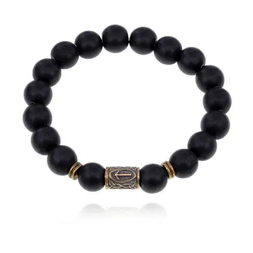 Славянский рунический стрейч-браслет из синтетического камня с символом руны Треба.