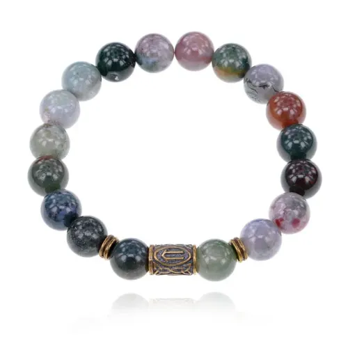 Славянский рунический стрейч-браслет из натурального камня яшма с символом руны Треба.