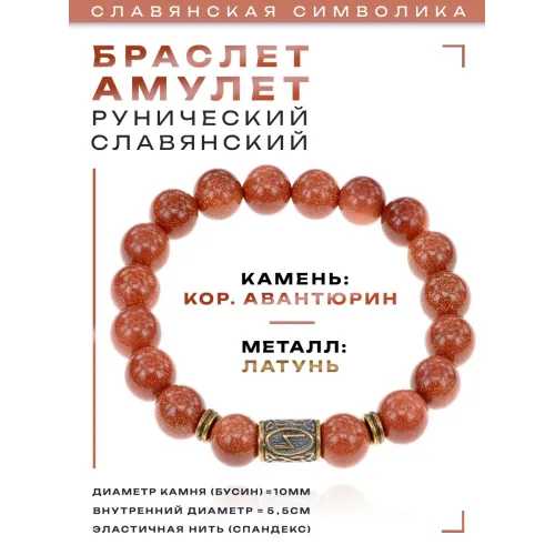 Браслет со славянской руной Сила из синтетического камня, имитирующего коричневый авантюрин.
