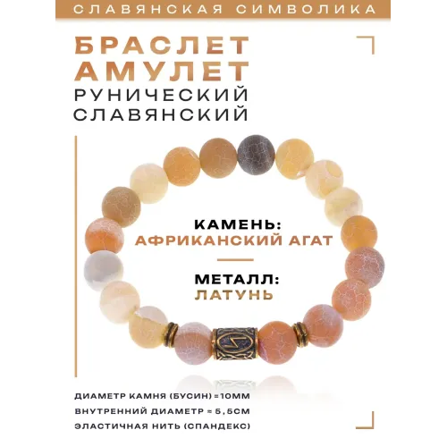 Славянский рунический стрейч-браслет из натурального африканского агата с символом руны Сила.