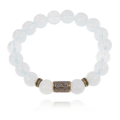 Браслет со славянской руной Сила и синт.камнем Лунный камень BSRK-08-11