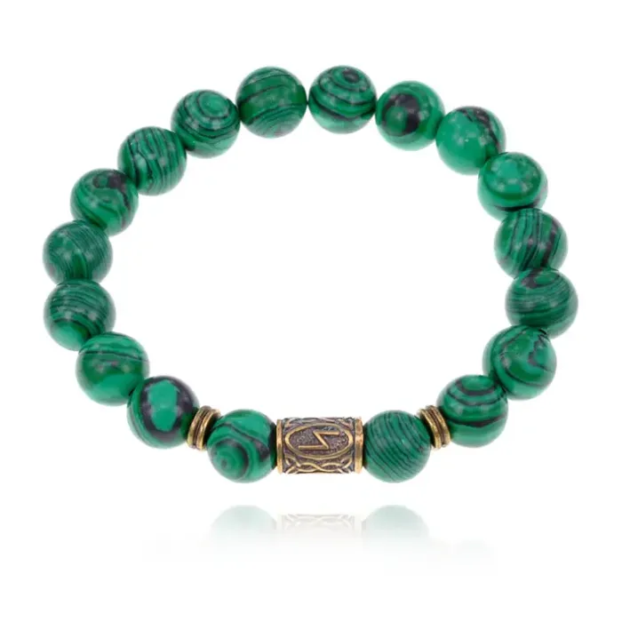 Браслет со славянской руной Сила и синтетическим камнем Малахит BSRK-08-12