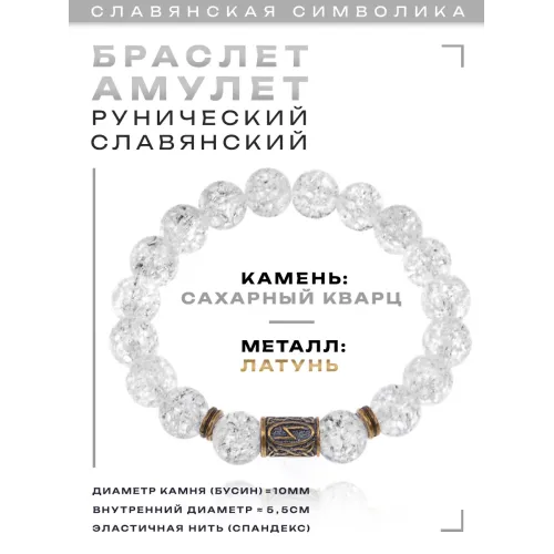 Браслет со славянской руной Сила и синт. камнем Сахарный кварц BSRK-08-16