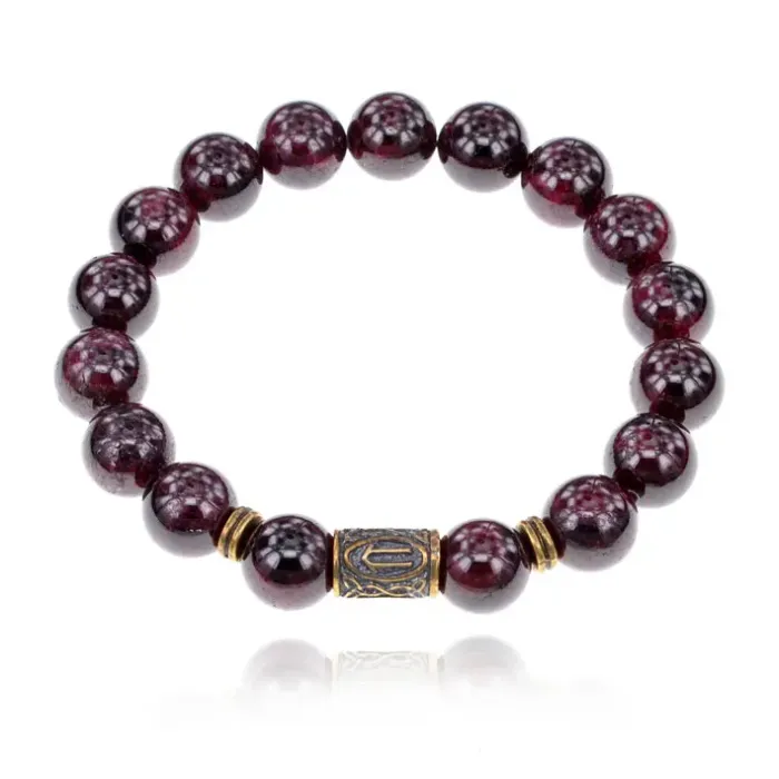 Славянский рунический стрейч-браслет из натурального камня граната с символом руны Ветер.