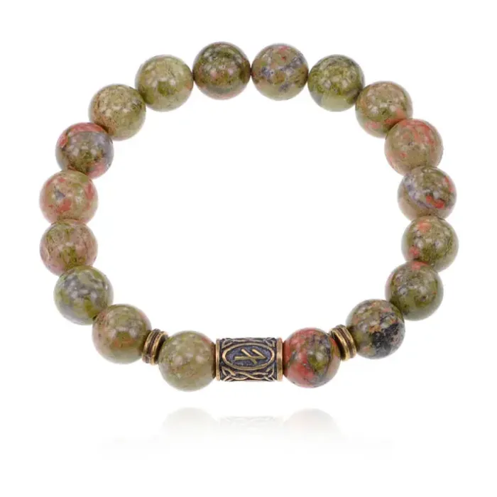 Браслет со славянской руной Берегиня и нат.камнем Унакит BSRK-10-20