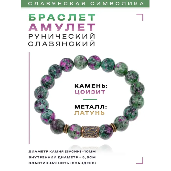 Браслет со славянской руной Уд и синт.камнем Цоизит BSRK-11-22