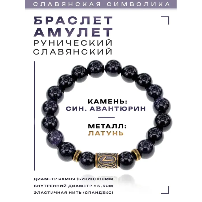 Браслет со славянской руной Леля и синт.камнем Синий авантюрин BSRK-12-02
