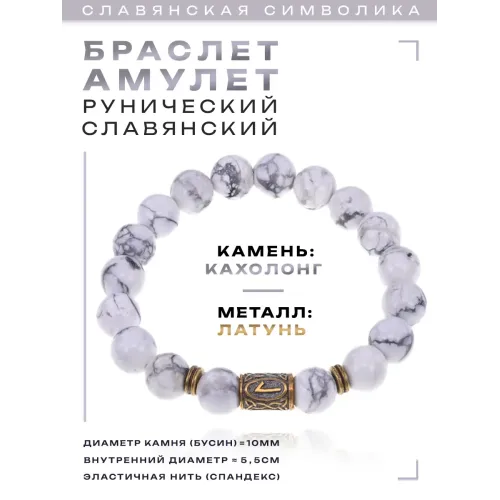 Браслет со славянской руной Леля и нат.камнем Кахолонг BSRK-12-07