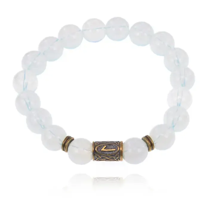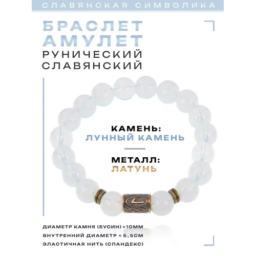 Браслет со славянской руной Леля и синт.камнем Лунный камень BSRK-12-11