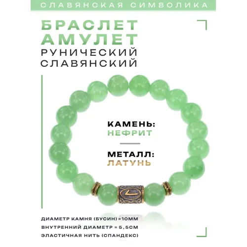 Славянский рунический стрейч-браслет из натурального камня нефрит с символом руны Леля.