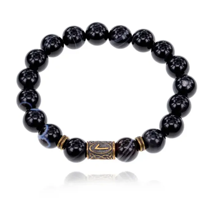 Браслет со славянской руной Леля и нат.камнем Черный агат BSRK-12-23