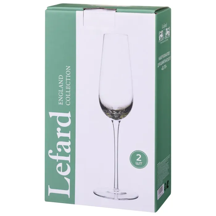 Набор бокалов для шампанского Lefard Elite предназначен для подачи игристых вин. Бокалы изготовлены из высококачественного стекла без содержания свинца, производство включает ручную работу стеклодувов.