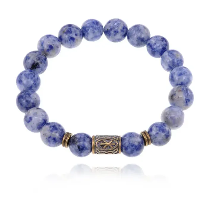 Славянский рунический стрейч-браслет из натурального камня содалит с символом руны Рок.