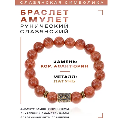 Браслет со славянской руной Даждьбог и синт.камнем Коричневый авантюрин BSRK-15-01