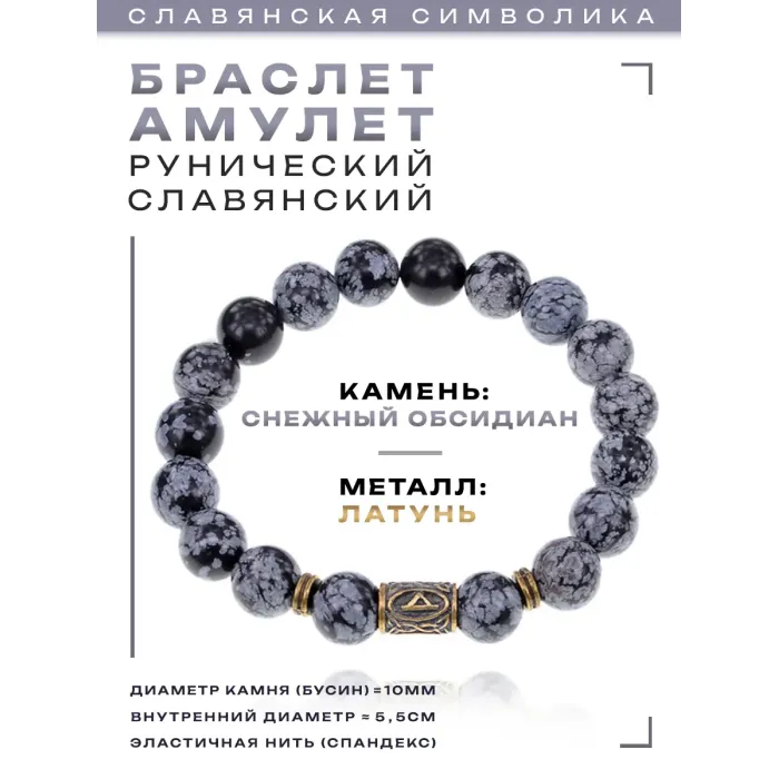 Браслет со славянской руной Даждьбог и нат.камнем Снежный обсидиан BSRK-15-14