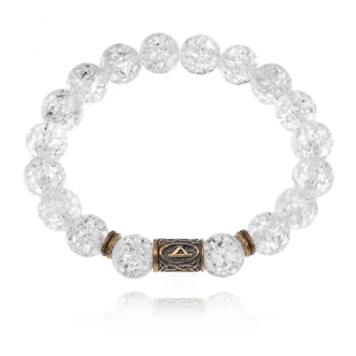 Браслет со славянской руной Даждьбог и синт.камнем Сахарный кварц BSRK-15-16