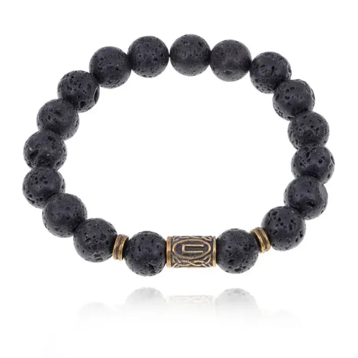 Славянский рунический стрейч-браслет из натурального камня лава с символом руны Перун.