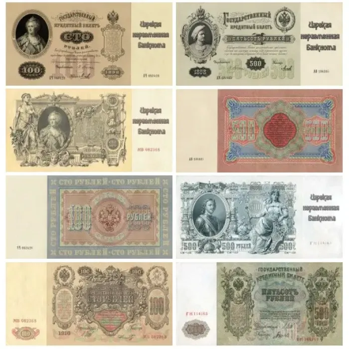 Царские неразменные банкноты, комплект (4 шт. разного достоинства) пацб01