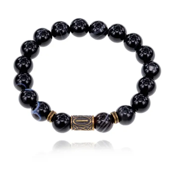Браслет со славянской руной Исток и нат.камнем Черный агат BSRK-18-23