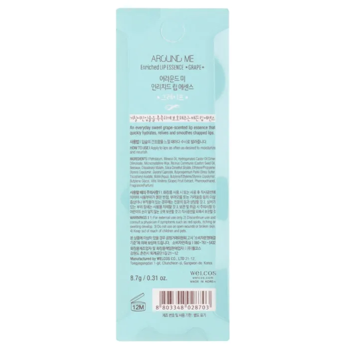 Эссенция для губ Around me enriched lip essence grape от бренда Welcos создает увлажняющее покрытие, обеспечивая мягкость и защиту от обветривания. Средство содержит масло ши и пчелиный воск, которые эффективно смягчают губы и помогают удалять мертвые клетки кожи. Освежающий аромат винограда добавляет приятные ощущения при каждом использовании. Продукт не вызывает раздражения, что делает его подходящим для ежедневного применения.