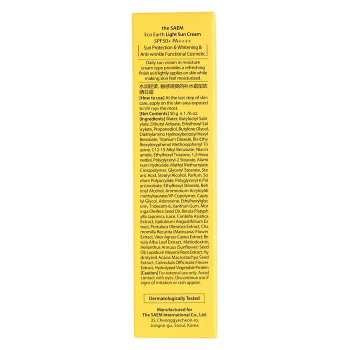 Легкий солнцезащитный крем Eco Earth Light Sun Cream SPF 50+ PA++++ от The Saem обеспечивает надежную защиту кожи от вредного воздействия UVA- и UVB-лучей. Благодаря высокому уровню защиты, крем предотвращает ожоги и преждевременное старение кожи. Формула на основе фитокомплекса делает его идеальным для ежедневного использования, обеспечивая комфортное нанесение без ощущения тяжести.