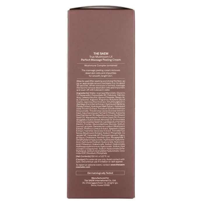 Крем-эксфолиант для лица True Mushroom LX Perfect Massage Peeling Cream от The Saem предлагает уникальное очищение и уход благодаря инновационному грибному комплексу. Густая, насыщенная текстура крема тает под воздействием тепла кожи, позволяя провести легкий массаж. Превращаясь в деликатный гоммаж, средство бережно удаляет загрязнения и следы усталости с поверхности кожи.