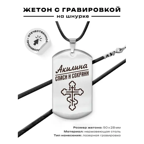 Именной жетон на шнурке — это стильный и практичный аксессуар, который отлично подойдет для повседневного использования или в качестве подарка. Изготовленный из высококачественной нержавеющей стали, он отличается прочностью и долговечностью. Гравировка изображения выполняется на одной стороне изделия, что придаёт ему уникальность и индивидуальность.