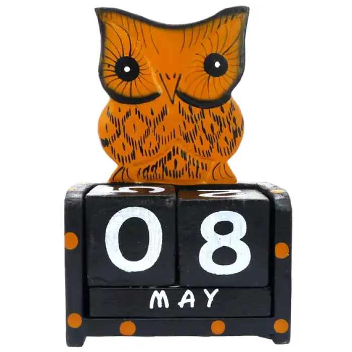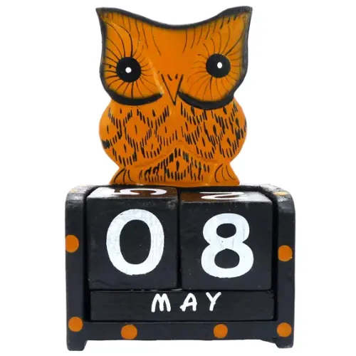 Настольный календарь из дерева в форме совы.