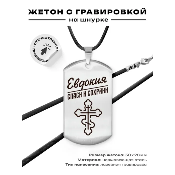 Именной жетон на шнурке — это стильный и практичный аксессуар, выполненный из высококачественной нержавеющей стали. Такой жетон с гравировкой может стать уникальным подарком или символом значимого события. Размер изделия составляет 50х28 мм, что делает его удобным для ношения. Жетон комплектуется прочным шнурком с застёжкой, обеспечивающим надежное крепление. Упакован в прозрачный пакетик, что добавляет изделию презентабельности. Этот аксессуар традиционно используется для персонализации и выделения индивидуальности.
