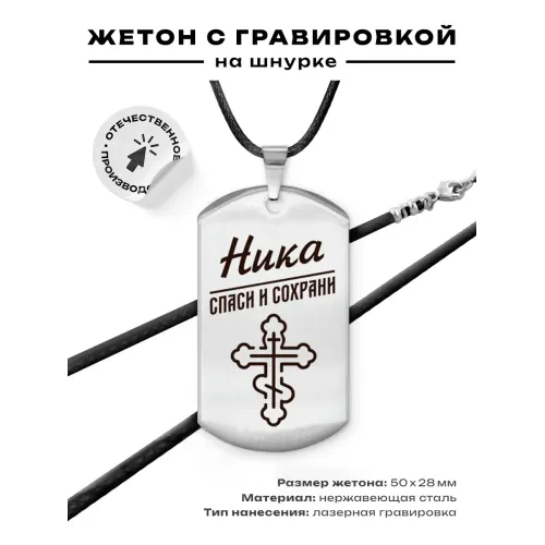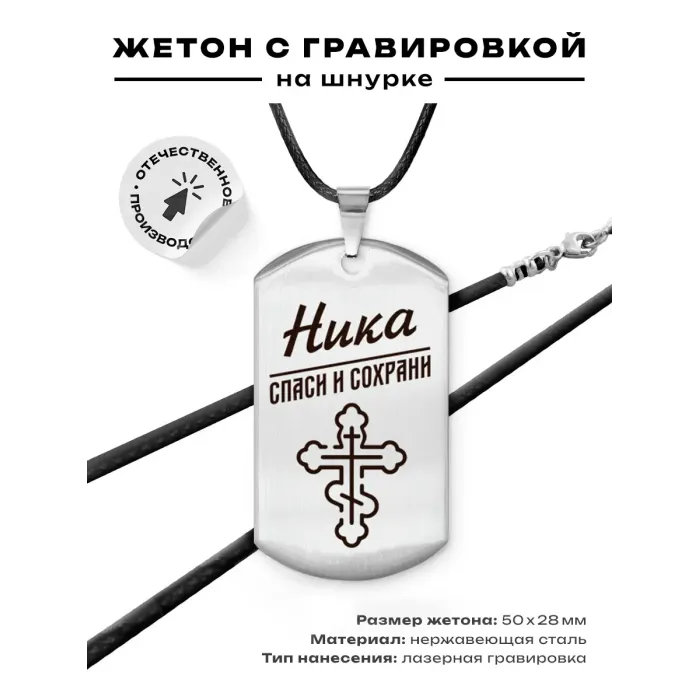 Именной жетон на шнурке — стильный и практичный аксессуар, который идеально подходит для индивидуализации. Изготовленный из высококачественной нержавеющей стали, этот жетон отличается прочностью и долговечностью. Гравировка изображения выполняется с высокой точностью на одной стороне изделия, что придаёт ему уникальность.