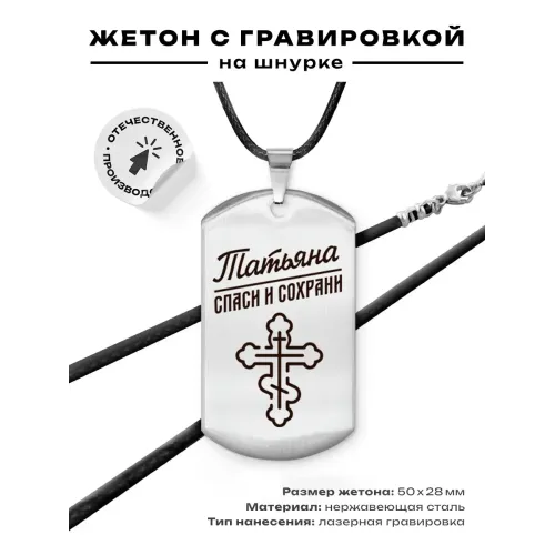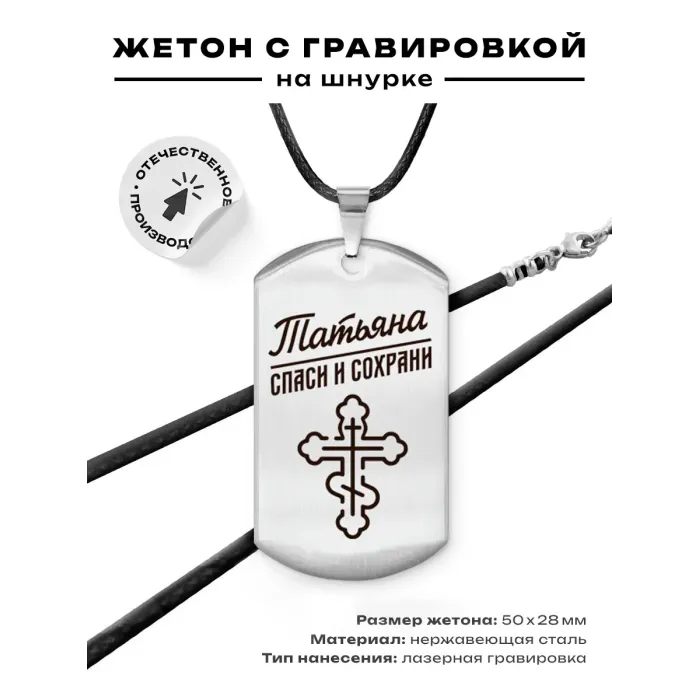 Именной жетон на шнурке — стильный и практичный аксессуар, выполненный из высококачественной нержавеющей стали. Этот уникальный предмет станет отличным подарком или элементом личного стиля.