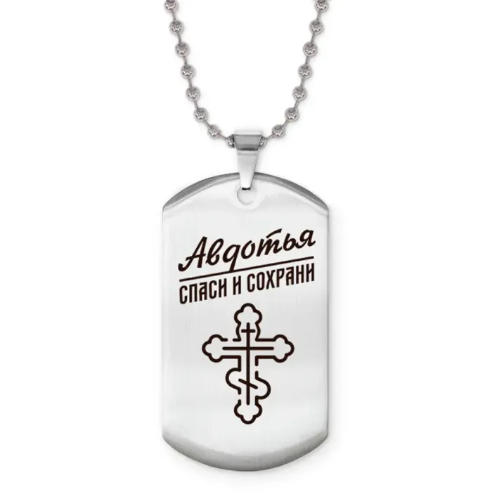 Именной жетон на цепочке — это стильный и практичный аксессуар, выполненный из высококачественной нержавеющей стали. Он станет отличным подарком для близкого человека или символом важного события.