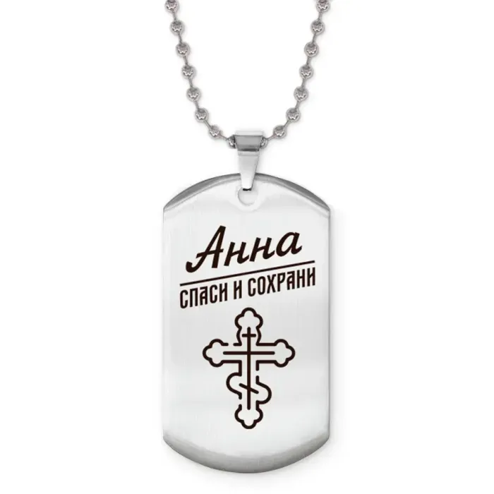 Именной жетон на цепочке — стильный и оригинальный аксессуар, выполненный из высококачественной нержавеющей стали. Этот жетон станет отличным подарком для близких или символом индивидуальности.