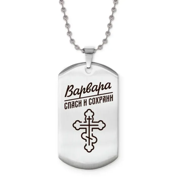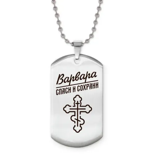 Именной жетон на цепочке Варвара — это стильный и практичный аксессуар, выполненный из высококачественной нержавеющей стали. Он станет отличным подарком, символизирующим индивидуальность и уникальность. Гравировка изображения выполняется на одной стороне изделия, что добавляет ему оригинальности.