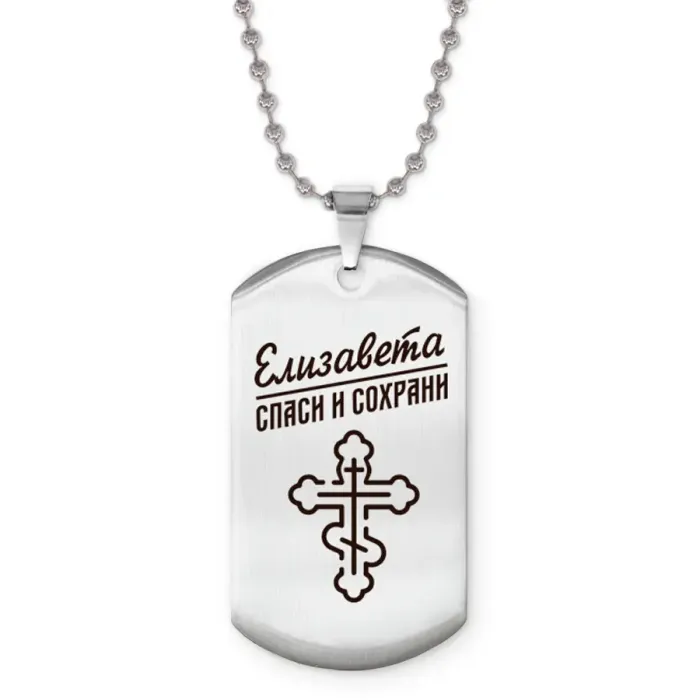 Именной жетон на цепочке Елизавета — это стильный аксессуар, выполненный из высококачественной нержавеющей стали. Он станет отличным подарком или оригинальным украшением для себя.