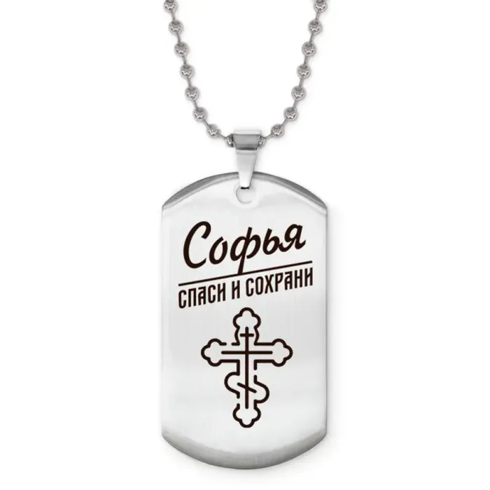 Именной жетон на цепочке — стильный аксессуар, который станет отличным подарком для близких. Изготовленный из высококачественной нержавеющей стали, он отличается прочностью и долговечностью. Гравировка изображения выполняется с одной стороны изделия, что придаёт ему уникальность и индивидуальность.