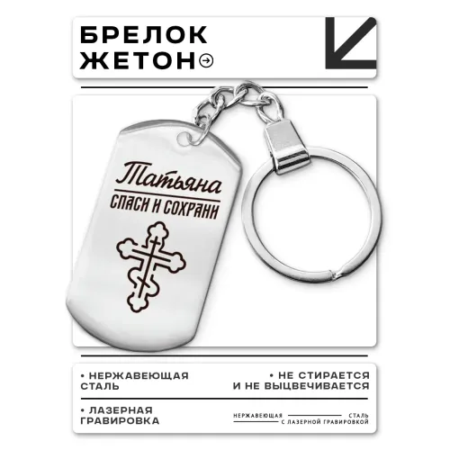 Именной брелок-жетон Татьяна — это стильный аксессуар, выполненный из высококачественной нержавеющей стали. Он станет отличным подарком для близкого человека или символом значимого события. Изображение на жетоне наносится методом гравировки, что придаёт изделию уникальность и долговечность.