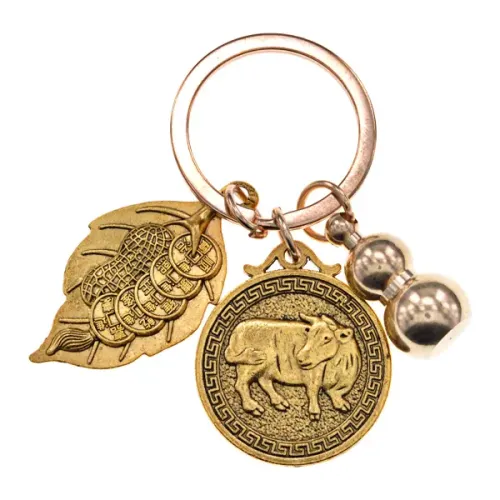 Брелок Восточный гороскоп - Бык, Пять монет и Тыква-горлянка — это стильный аксессуар с глубоким символическим значением. Он олицетворяет удачу и благополучие, что делает его отличным подарком для близких или себя. Изготовленный из качественного металла с покрытием под золото, брелок выглядит элегантно и привлекательно.