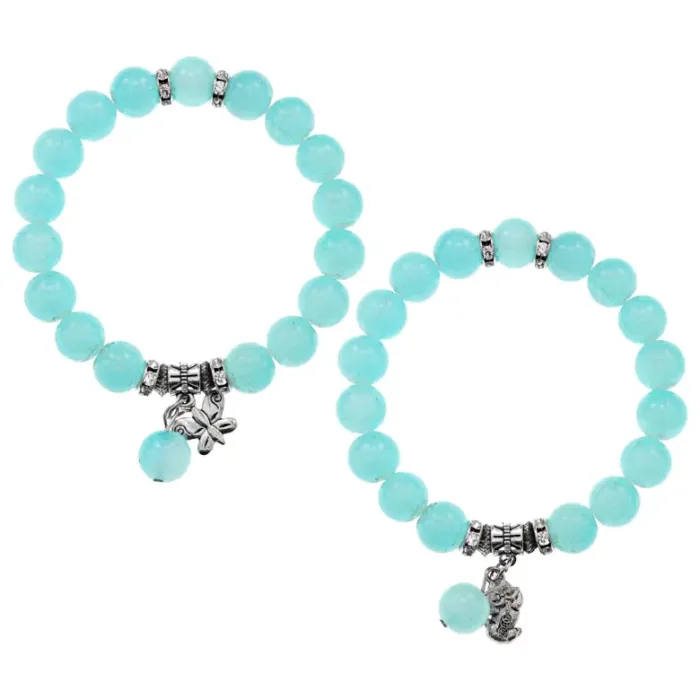 Стеклянный браслет 10мм с подвесками в ассорт., цвет голубой BS148-6