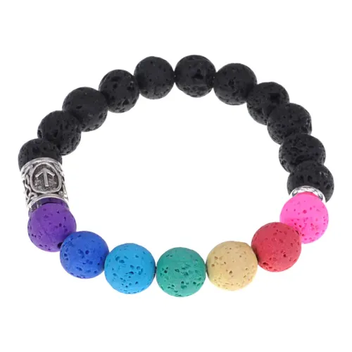Стрейч-браслет с бусинами из натуральной лавы — символ силы и мужественности. Этот уникальный аксессуар дополнен вставками из металла с покрытием под серебро, что придаёт ему стильный вид. Внутренний диаметр браслета составляет около 5,5 см, а диаметр бусин из камня — 10 мм. Размеры рунической бусины равны 13х10 мм. В комплекте предусмотрен бархатный мешочек и буклет с описанием значений камней.