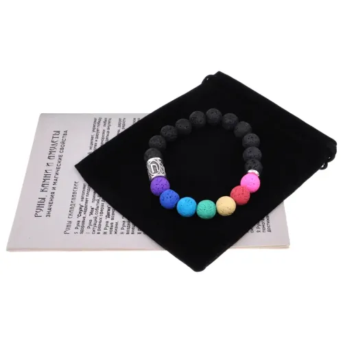 - Бусины из натурального камня лавы диаметром 10 мм, известного своей способностью укреплять интуицию и мудрость.